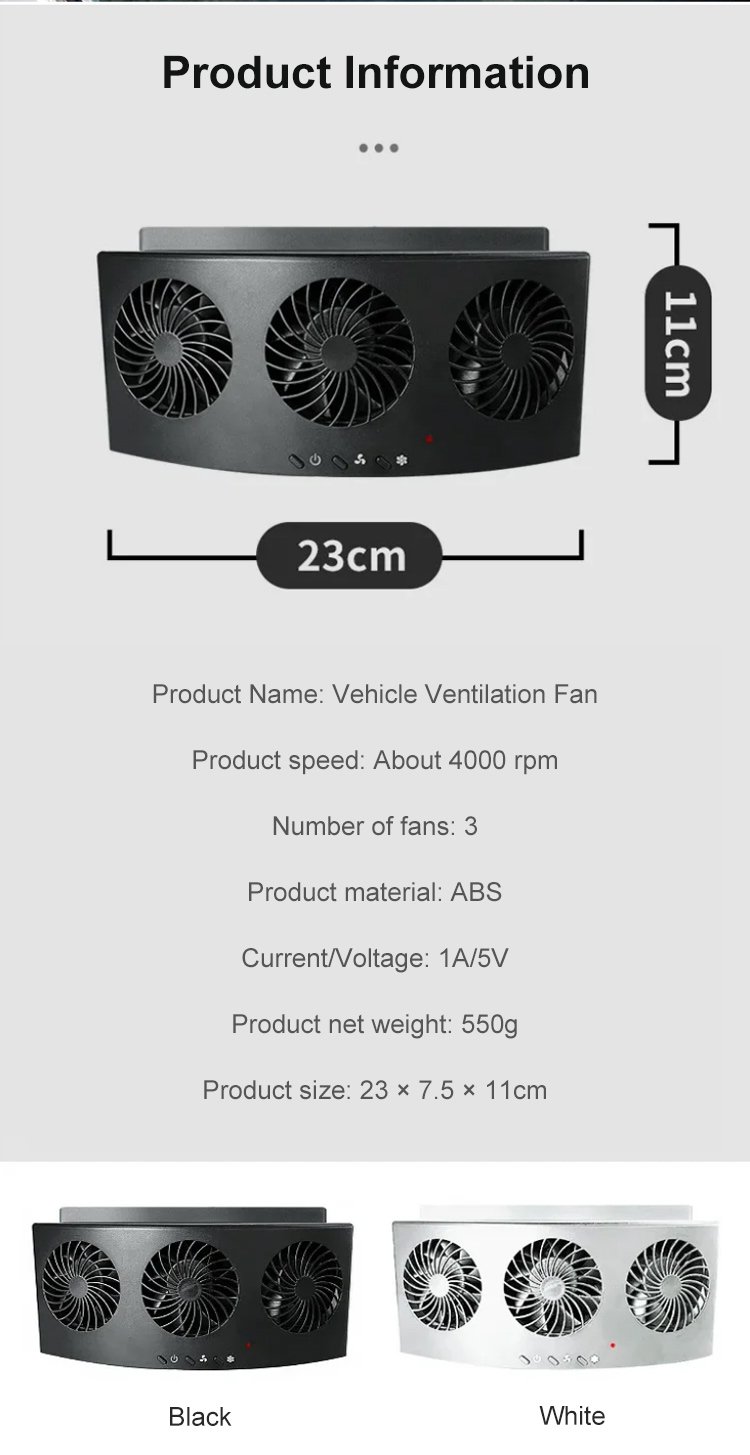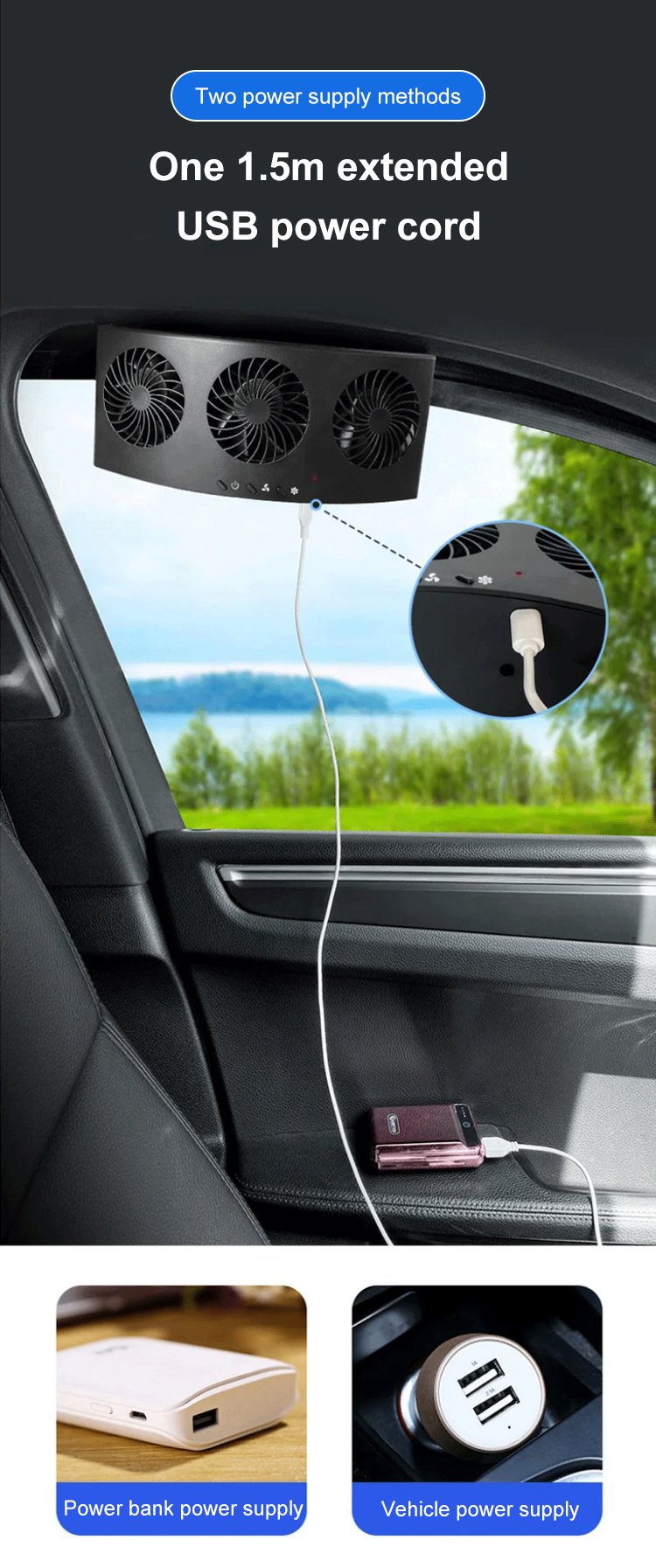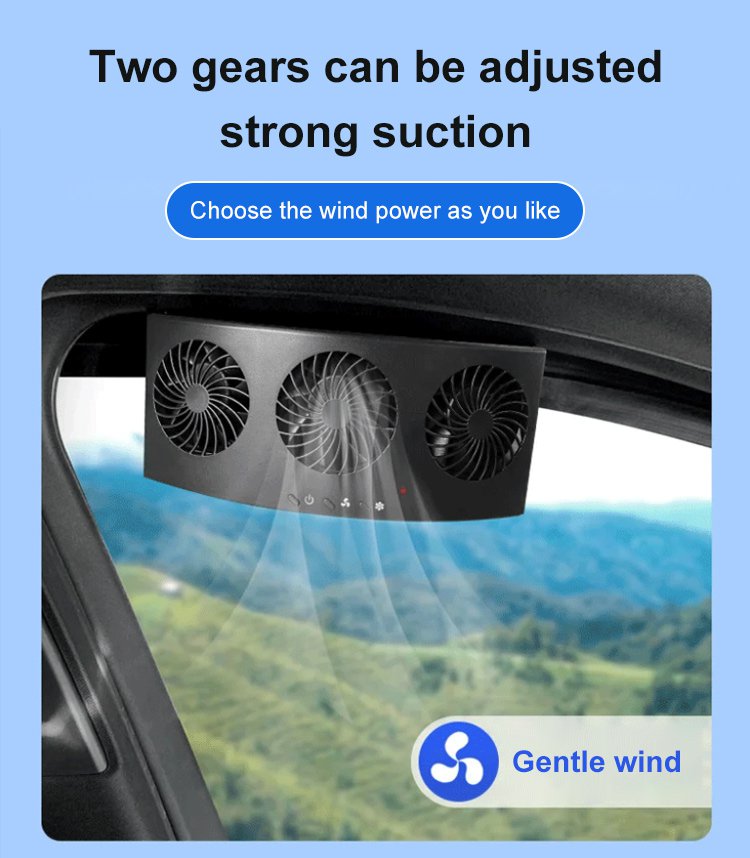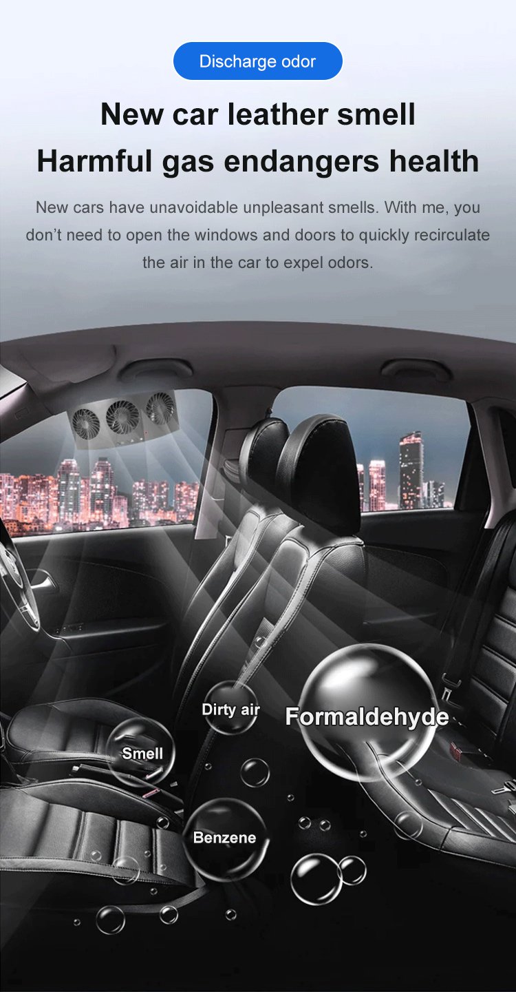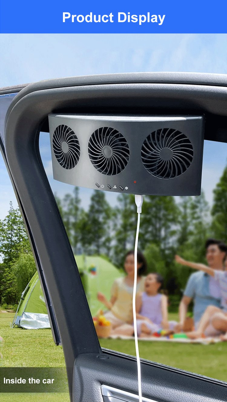 Our auto fan is perfect for circulating fresh air. especially when your AC is weak. This vehicle fan efficiently blows hot air out of your car. while also eliminating unpleasant odors like pet. cigarette. or food smells. It's environmentally friendly and consumes less energy